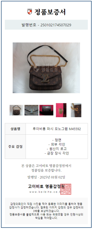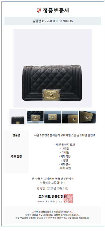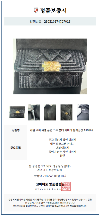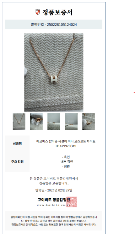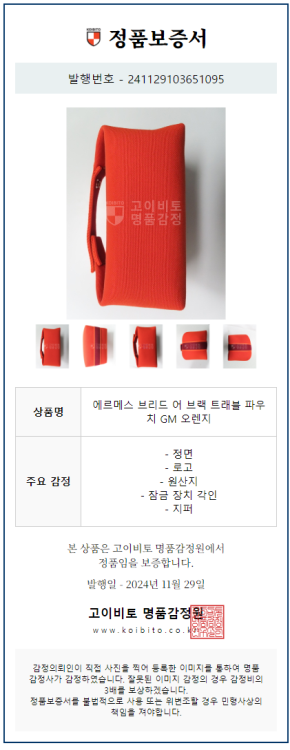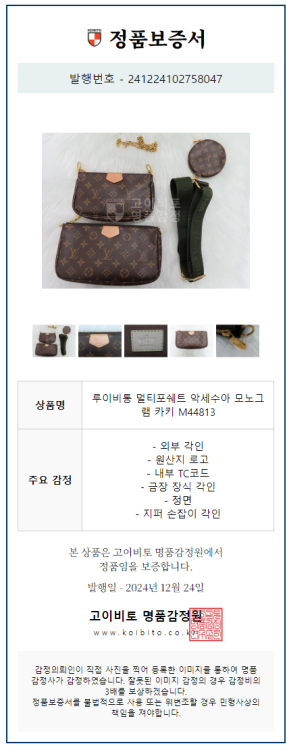 공식홈페이지와 백화점 아울렛 중심으로 단 한건의 예외도 없는 확실한 정품거래를 지향하며 가품 혹은 레플리카 제품이 너무나 일상적으로 판매가 되고 있기에 명품 감정서를 매번 발급하고 있으며