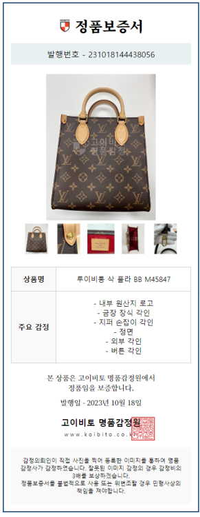 공식홈페이지와 백화점 아울렛 중심으로 단 한건의 예외도 없는 확실한 정품거래를 지향하며 가품 혹은 레플리카 제품이 너무나 일상적으로 판매가 되고 있기에 명품 감정서를 매번 발급하고 있으며