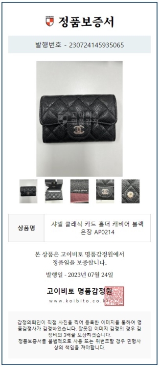 또한 고객의 상품에 대한 영수증 및 정가품 증명서도 모두 제공하고 있습니다.