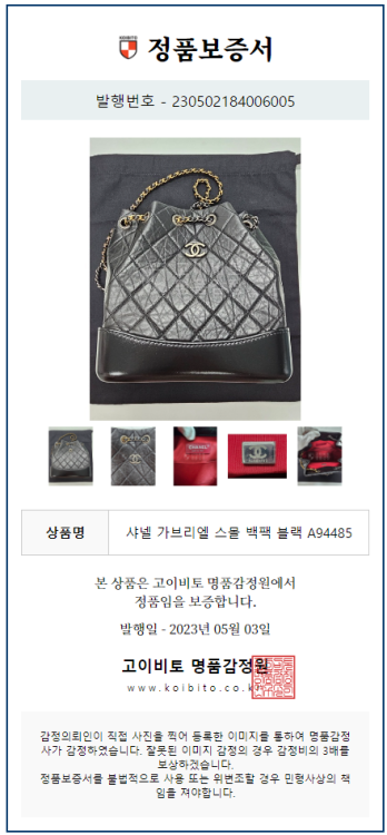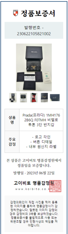 공식홈페이지와 백화점 아울렛 중심으로 단 한건의 예외도 없는 확실한 정품거래를 지향하며 가품 혹은 레플리카 제품이 너무나 일상적으로 판매가 되고 있기에 명품 감정서를 매번 발급하고 있으며