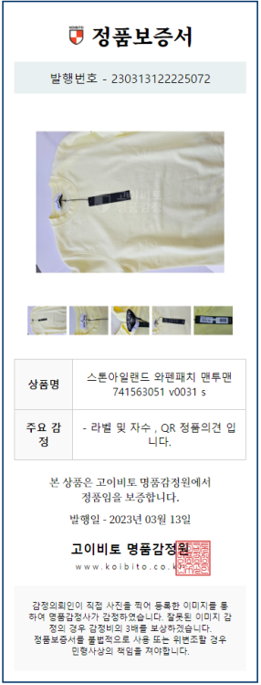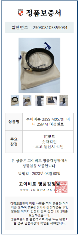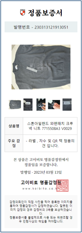공식홈페이지와 백화점 아울렛 중심으로 단 한건의 예외도 없는 확실한 정품거래를 지향하며 가품 혹은 레플리카 제품이 너무나 일상적으로 판매가 되고 있기에 명품 감정서를 매번 발급하고 있으며