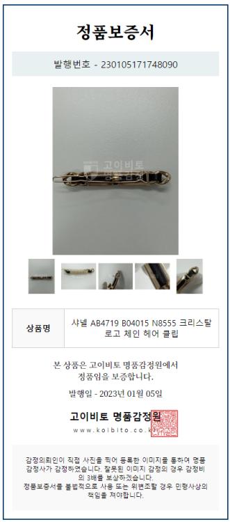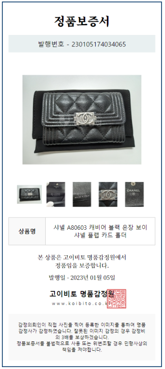공식홈페이지와 백화점 아울렛 중심으로 단 한건의 예외도 없는 확실한 정품거래를 지향하며 가품 혹은 레플리카 제품이 너무나 일상적으로 판매가 되고 있기에 명품 감정서를 매번 발급하고 있으며