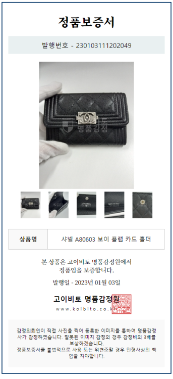 또한 고객의 상품에 대한 영수증 및 정가품 증명서도 모두 제공하고 있습니다.