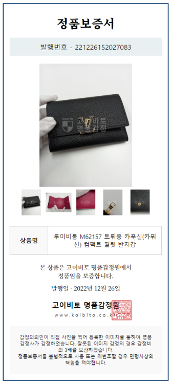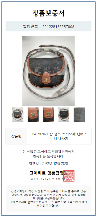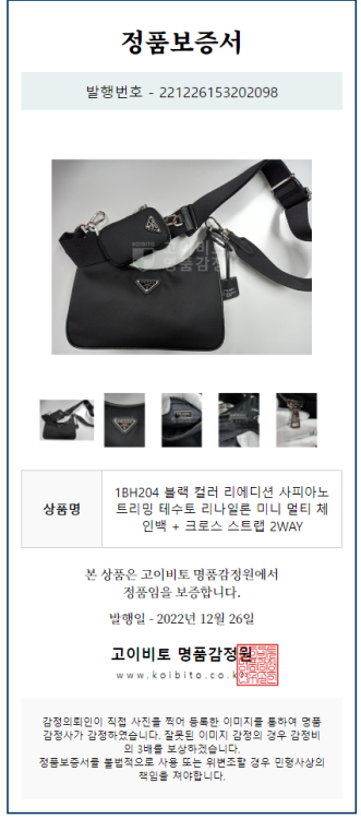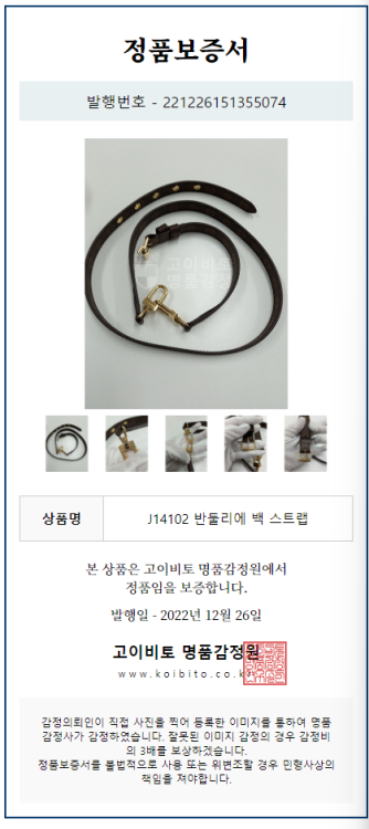 공식홈페이지와 백화점 아울렛 중심으로 단 한건의 예외도 없는 확실한 정품거래를 지향하며 가품 혹은 레플리카 제품이 너무나 일상적으로 판매가 되고 있기에 명품 감정서를 매번 발급하고 있으며