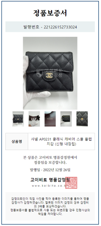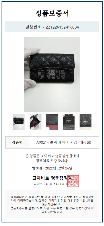 또한 고객의 상품에 대한 영수증 및 정가품 증명서도 모두 제공하고 있습니다.