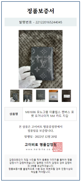공식홈페이지와 백화점 아울렛 중심으로 단 한건의 예외도 없는 확실한 정품거래를 지향하며 가품 혹은 레플리카 제품이 너무나 일상적으로 판매가 되고 있기에 명품 감정서를 매번 발급하고 있으며