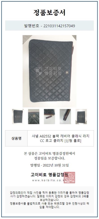 또한 고객의 상품에 대한 영수증 및 정가품 증명서도 모두 제공하고 있습니다.