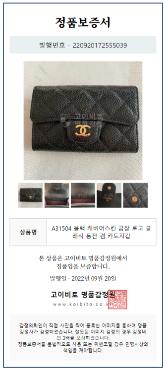 또한 고객의 상품에 대한 영수증 및 정가품 증명서도 모두 제공하고 있습니다.