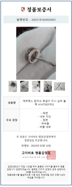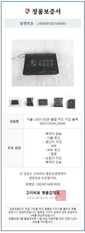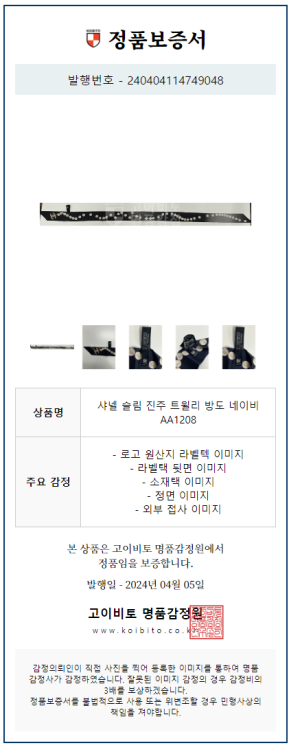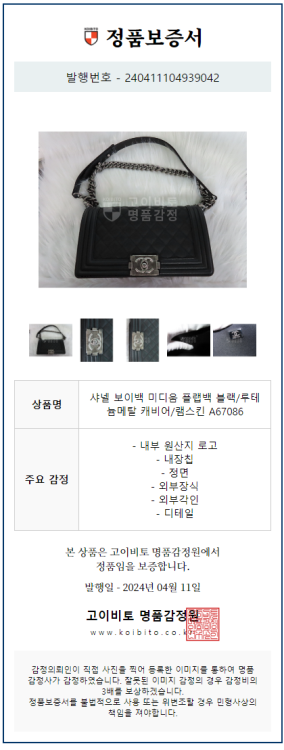 공식홈페이지와 백화점 아울렛 중심으로 단 한건의 예외도 없는 확실한 정품거래를 지향하며 가품 혹은 레플리카 제품이 너무나 일상적으로 판매가 되고 있기에 명품 감정서를 매번 발급하고 있으며