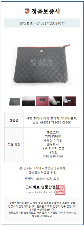또한 고객의 상품에 대한 영수증 및 정가품 증명서도 모두 제공하고 있습니다.