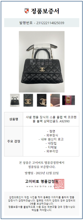공식홈페이지와 백화점 아울렛 중심으로 단 한건의 예외도 없는 확실한 정품거래를 지향하며 가품 혹은 레플리카 제품이 너무나 일상적으로 판매가 되고 있기에 명품 감정서를 매번 발급하고 있으며