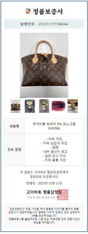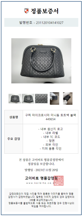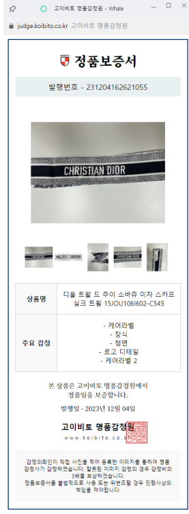 공식홈페이지와 백화점 아울렛 중심으로 단 한건의 예외도 없는 확실한 정품거래를 지향하며 가품 혹은 레플리카 제품이 너무나 일상적으로 판매가 되고 있기에 명품 감정서를 매번 발급하고 있으며