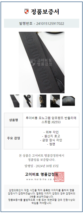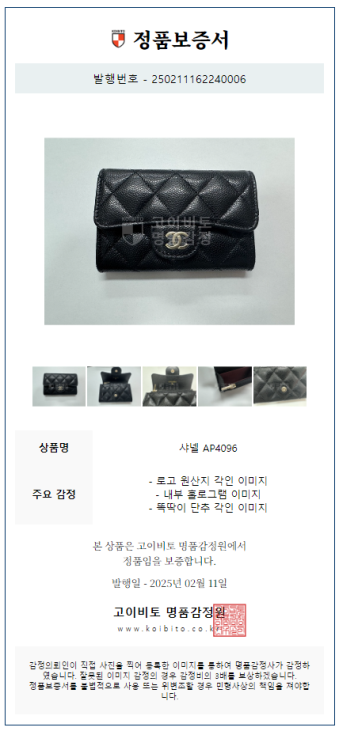 공식홈페이지와 백화점 아울렛 중심으로 단 한건의 예외도 없는 확실한 정품거래를 지향하며 가품 혹은 레플리카 제품이 너무나 일상적으로 판매가 되고 있기에 명품 감정서를 매번 발급하고 있으며