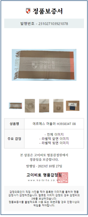 공식홈페이지와 백화점 아울렛 중심으로 단 한건의 예외도 없는 확실한 정품거래를 지향하며 가품 혹은 레플리카 제품이 너무나 일상적으로 판매가 되고 있기에 명품 감정서를 매번 발급하고 있으며