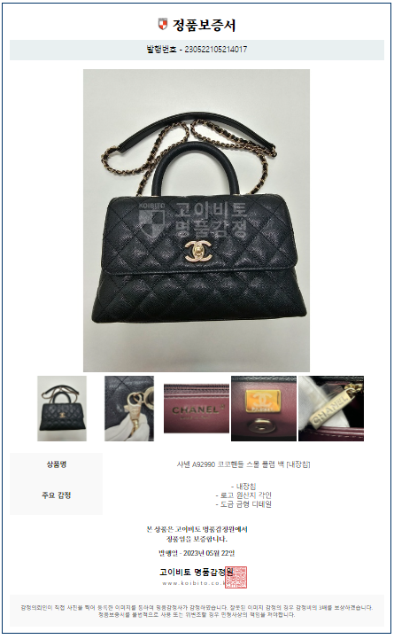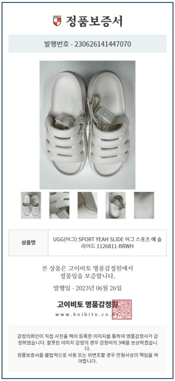 공식홈페이지와 백화점 아울렛 중심으로 단 한건의 예외도 없는 확실한 정품거래를 지향하며 가품 혹은 레플리카 제품이 너무나 일상적으로 판매가 되고 있기에 명품 감정서를 매번 발급하고 있으며