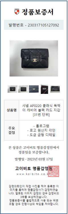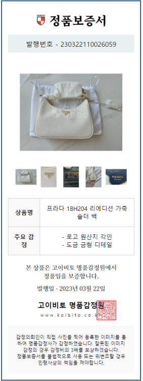 공식홈페이지와 백화점 아울렛 중심으로 단 한건의 예외도 없는 확실한 정품거래를 지향하며 가품 혹은 레플리카 제품이 너무나 일상적으로 판매가 되고 있기에 명품 감정서를 매번 발급하고 있으며