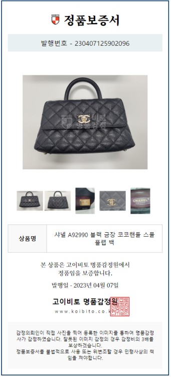 또한 고객의 상품에 대한 영수증 및 정가품 증명서도 모두 제공하고 있습니다.