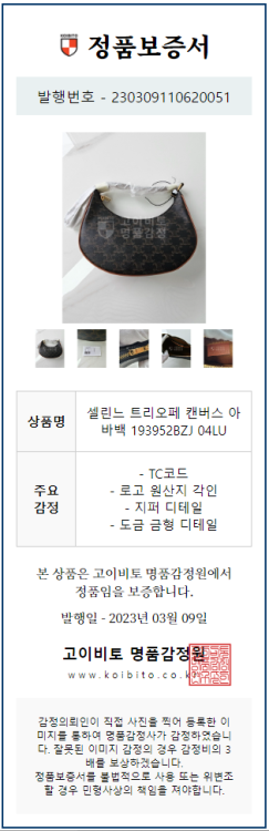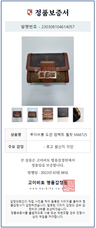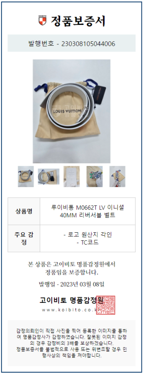 공식홈페이지와 백화점 아울렛 중심으로 단 한건의 예외도 없는 확실한 정품거래를 지향하며 가품 혹은 레플리카 제품이 너무나 일상적으로 판매가 되고 있기에 명품 감정서를 매번 발급하고 있으며