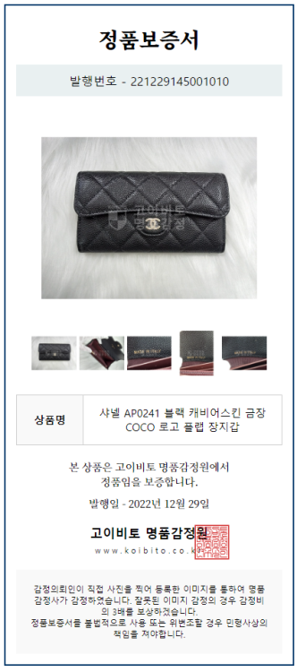 또한 고객의 상품에 대한 영수증 및 정가품 증명서도 모두 제공하고 있습니다.
