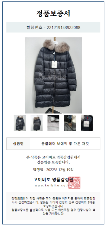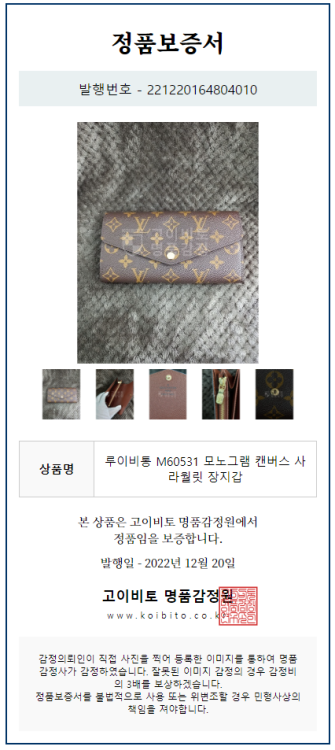 공식홈페이지와 백화점 아울렛 중심으로 단 한건의 예외도 없는 확실한 정품거래를 지향하며 가품 혹은 레플리카 제품이 너무나 일상적으로 판매가 되고 있기에 명품 감정서를 매번 발급하고 있으며