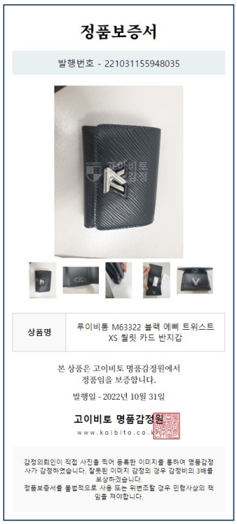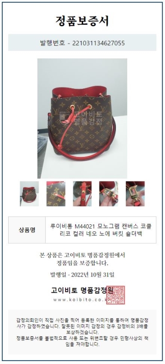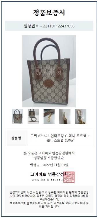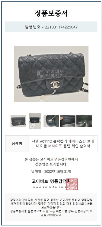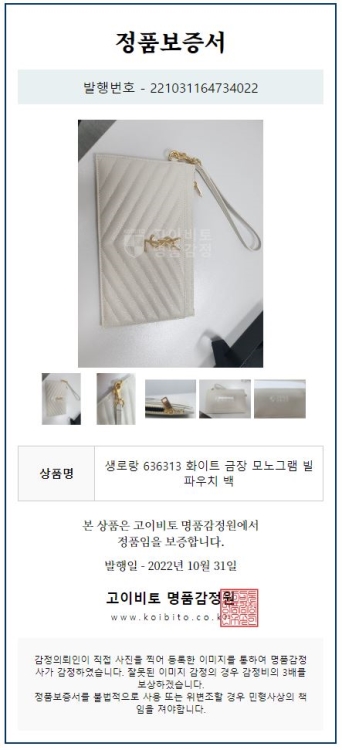 공식홈페이지와 백화점 아울렛 중심으로 단 한건의 예외도 없는 확실한 정품거래를 지향하며 가품 혹은 레플리카 제품이 너무나 일상적으로 판매가 되고 있기에 명품 감정서를 매번 발급하고 있으며