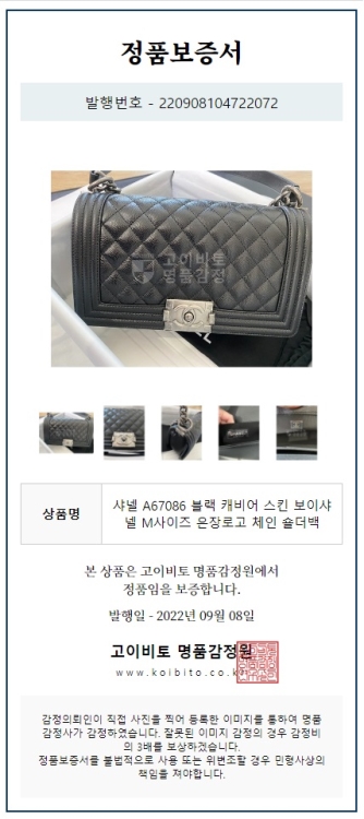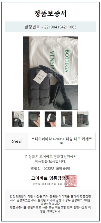 또한 고객의 상품에 대한 영수증 및 정가품 증명서도 모두 제공하고 있습니다.