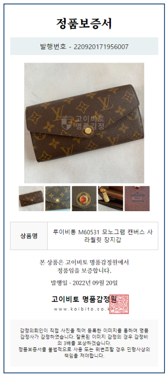 공식홈페이지와 백화점 아울렛 중심으로 단 한건의 예외도 없는 확실한 정품거래를 지향하며 가품 혹은 레플리카 제품이 너무나 일상적으로 판매가 되고 있기에 명품 감정서를 매번 발급하고 있으며