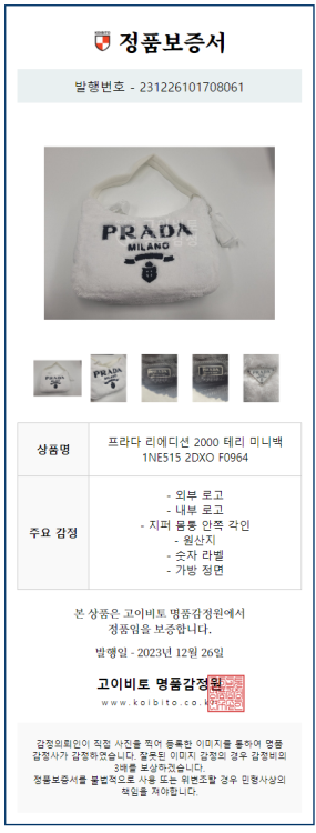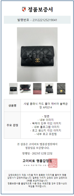 공식홈페이지와 백화점 아울렛 중심으로 단 한건의 예외도 없는 확실한 정품거래를 지향하며 가품 혹은 레플리카 제품이 너무나 일상적으로 판매가 되고 있기에 명품 감정서를 매번 발급하고 있으며