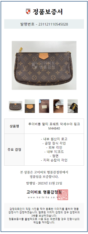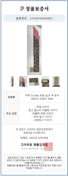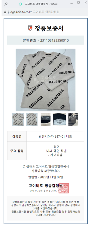 공식홈페이지와 백화점 아울렛 중심으로 단 한건의 예외도 없는 확실한 정품거래를 지향하며 가품 혹은 레플리카 제품이 너무나 일상적으로 판매가 되고 있기에 명품 감정서를 매번 발급하고 있으며